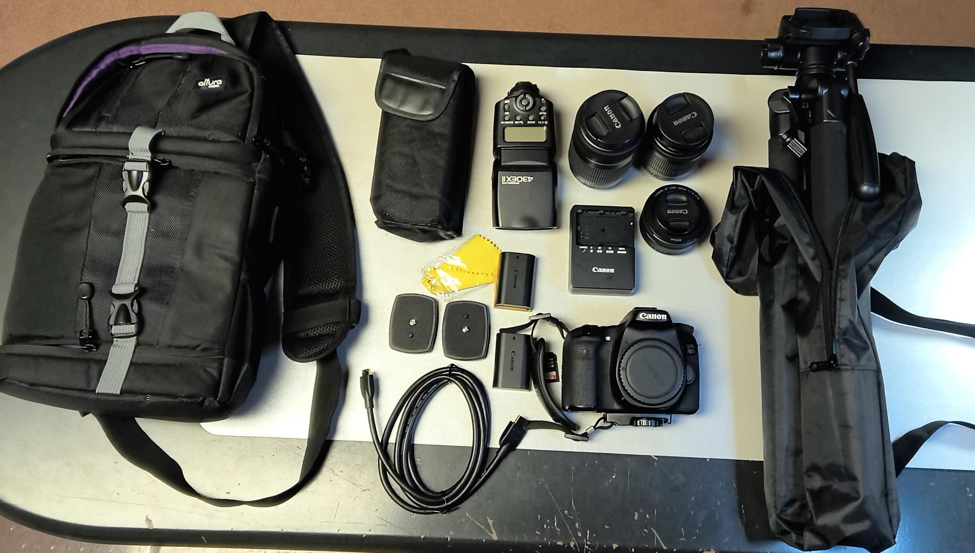 Canon EOS 70D Camera With Lenses, Flash, Batteries, Tripod, Sling Case and More!