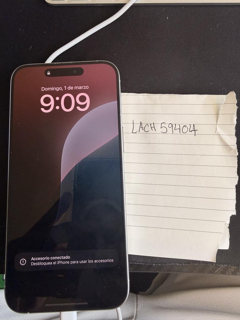 Vendo iPhone 15 Pro Max de 128GB, color Blanco Titanio, en excelente estado (como nuevo).