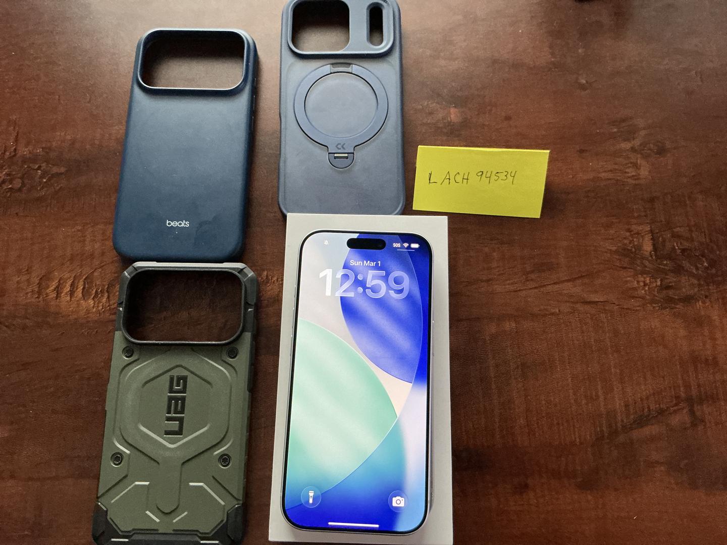 Apple iPhone 17 Pro Silver with skin installed, 1 Beats blue case, 1 green UAG case, and generic blue case with MagSafe. Also included original box with charging cable. Small mark on bottom right. Scratch on camera plateau. Have skin installed over it. 100% battery health with 80 cycles. No iCloud lock. No sim restrictions.