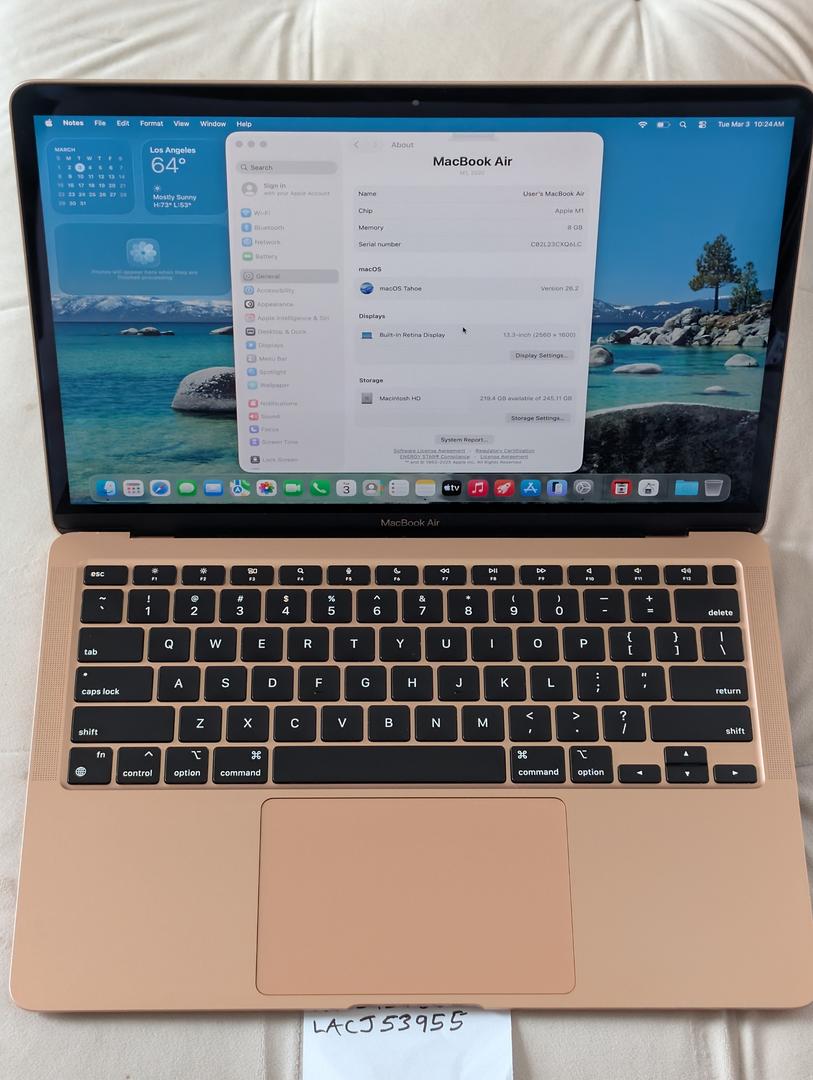 Apple MacBook Air 13 2020 M1 8-Core CPU 7-Core GPU 8GB RAM 256GB Storage Gold