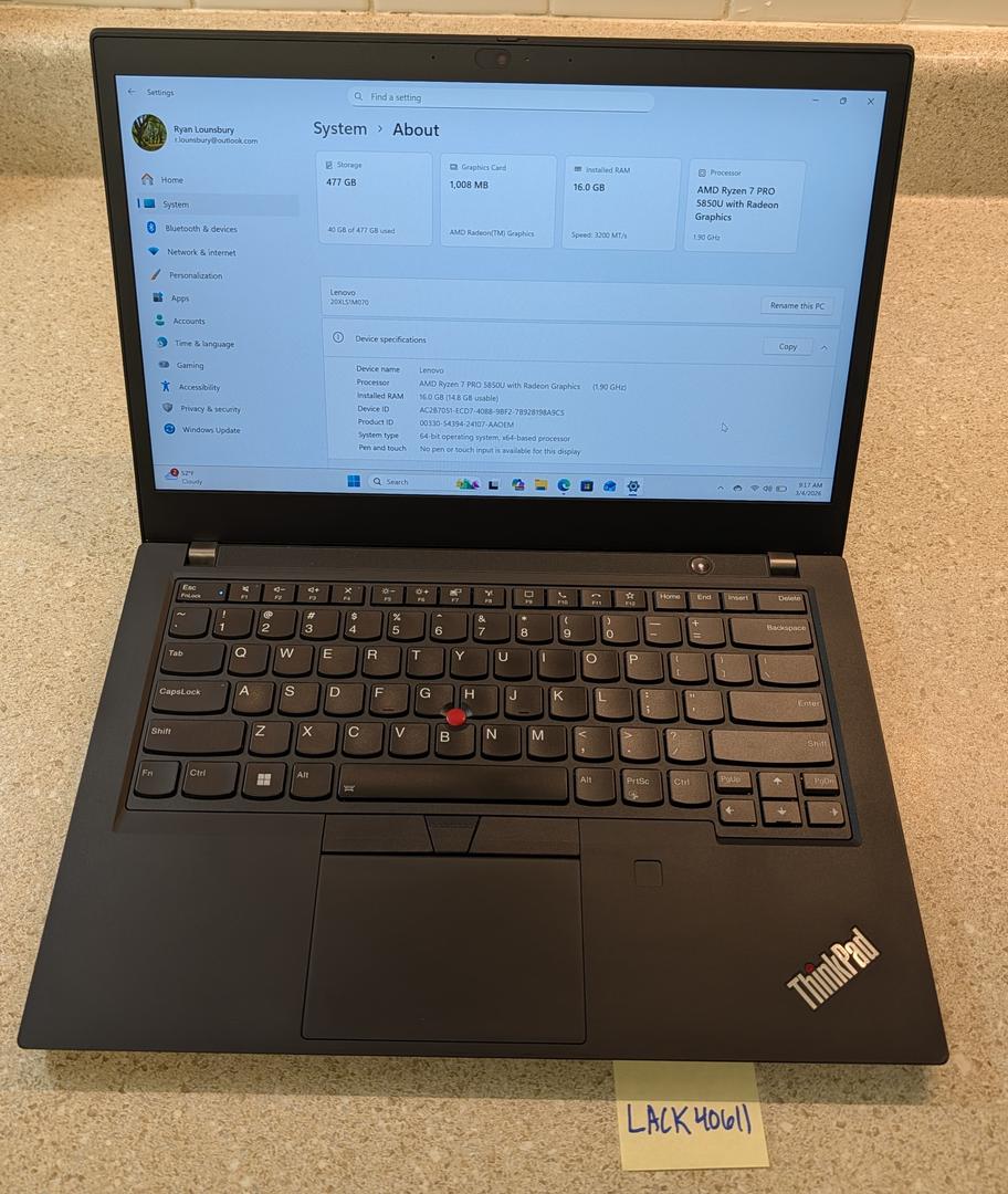 Excellent condition ThinkPad T14 w/AMD Ryzen Pro 7 5850U w/Radeon Graphics, 16GB of RAM, and 512GB SSD.