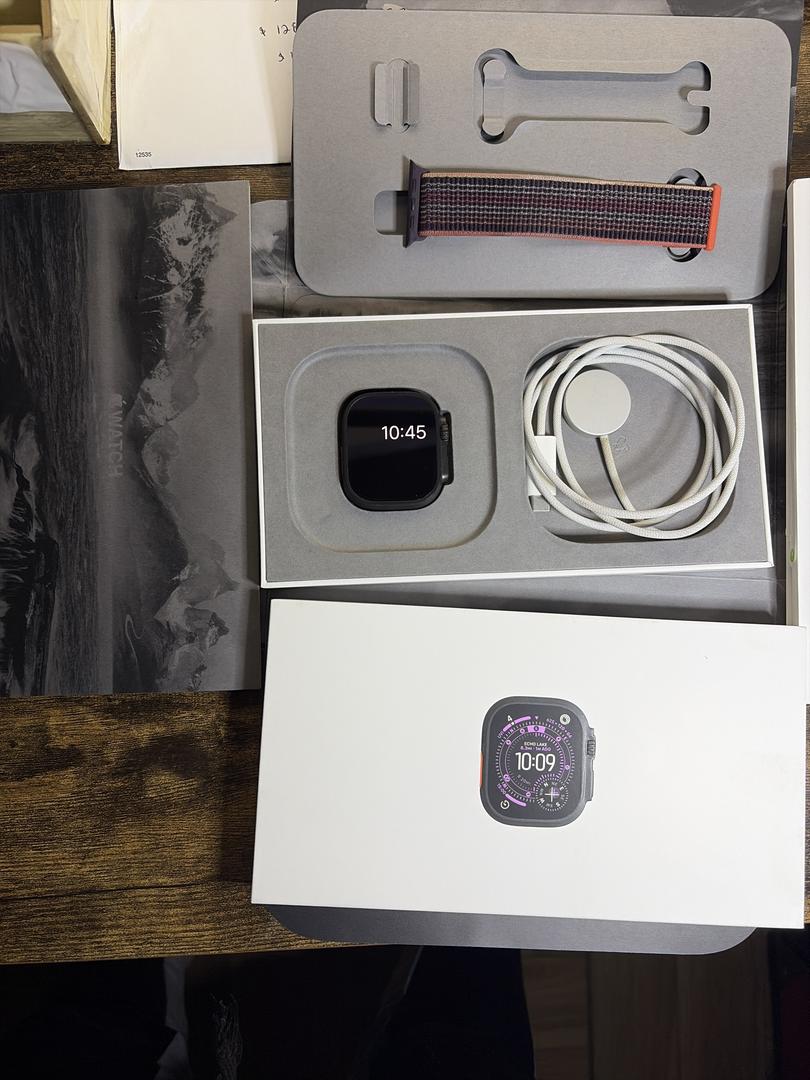 Selling an Apple Watch Ultra 49mm Black Titanium in good working condition. The watch works perfectly and has 100% battery health.