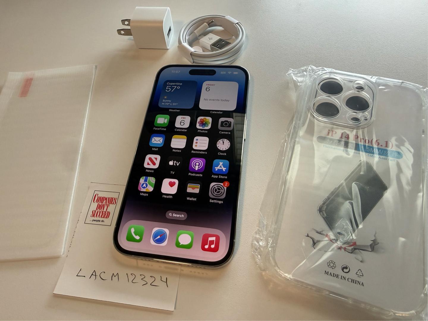Please note: this iPhone 14 Pro does not come with its box and accessories. It comes with a complimentary new cable, wall charger, tampered screen protector, and a new clear case. Please see images for details.
