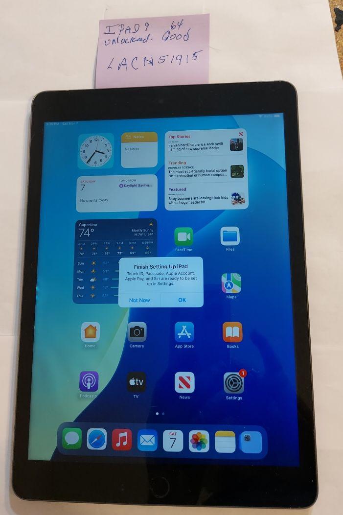 Ipad 9th Generation 64 GB Unlocked Gray Near Mint condition