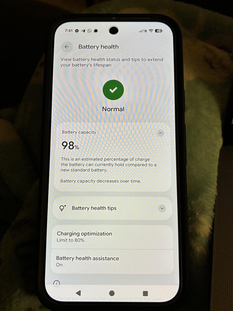 Battery health 98%! This was a test phone and not used heavily.