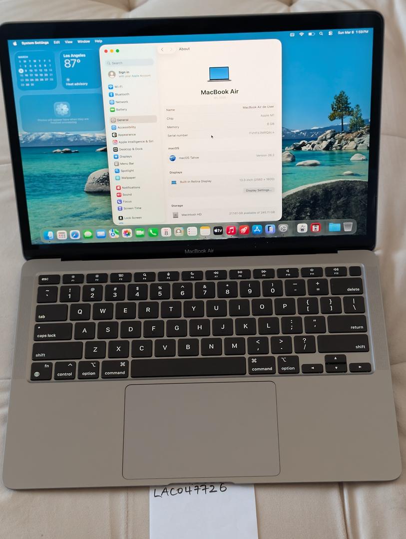 Apple MacBook Air 13 2020 M1 8-Core CPU 7-Core GPU 8GB RAM 256GB Storage Space Gray - 100% Battery