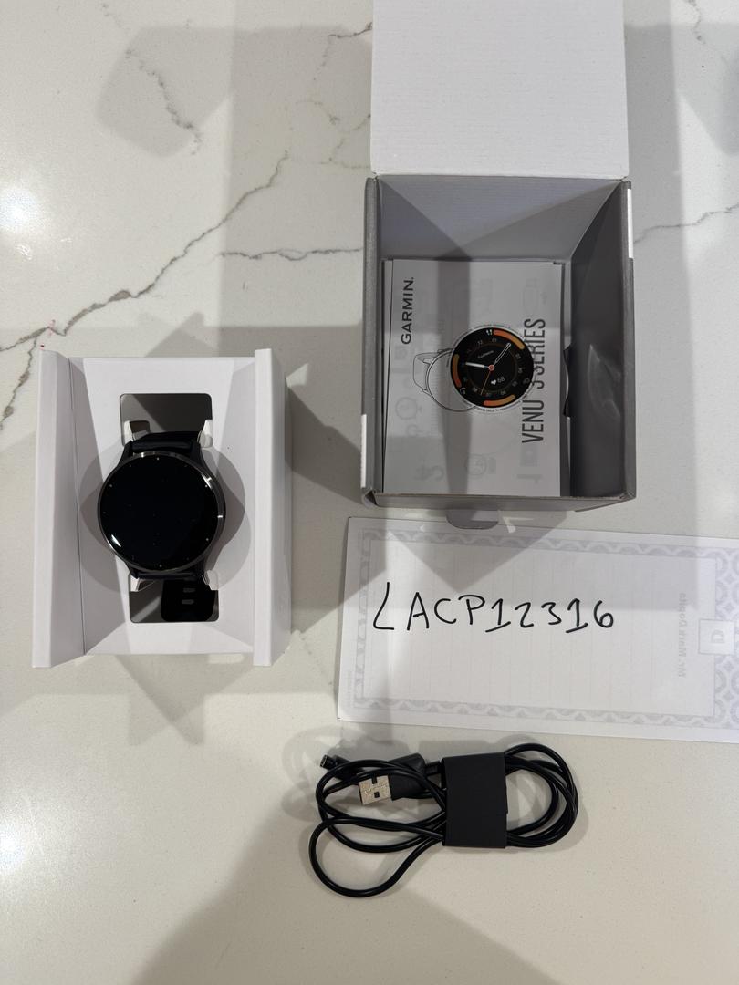 Garmin Venu 3 Health and Fitness GPS Smartwatch. Bought on Black Friday and is just not for me! The watch band (silicone) has wear but the watch face itself is in great shape!