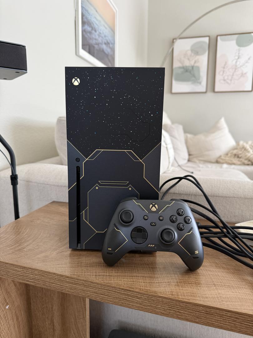 Includes the Halo Infinite Xbox Series X Console, Halo Infinite theme controller, HDMI cable, Power cable.