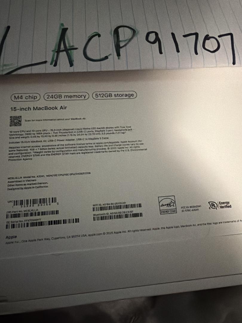 Brand new Apple MacBook Air 15-inch with the M4 chip, factory sealed and never opened. The original Apple seal is intact and the laptop has never been used or activated.