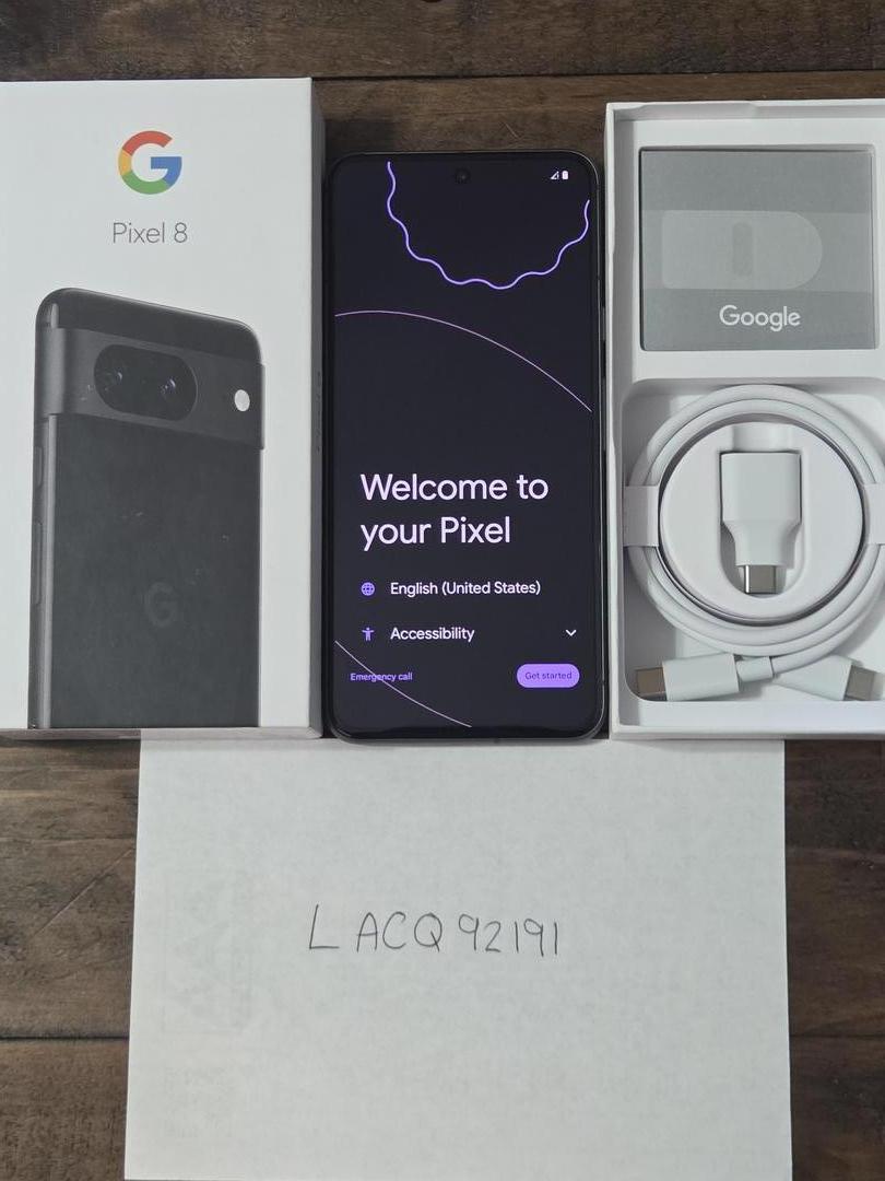 Verizon Google Pixel 8 128gb Obsidian black, perfect shape, no issues, never been activated, box, phone, and cord just like factory. Any other questions feel free to ask.