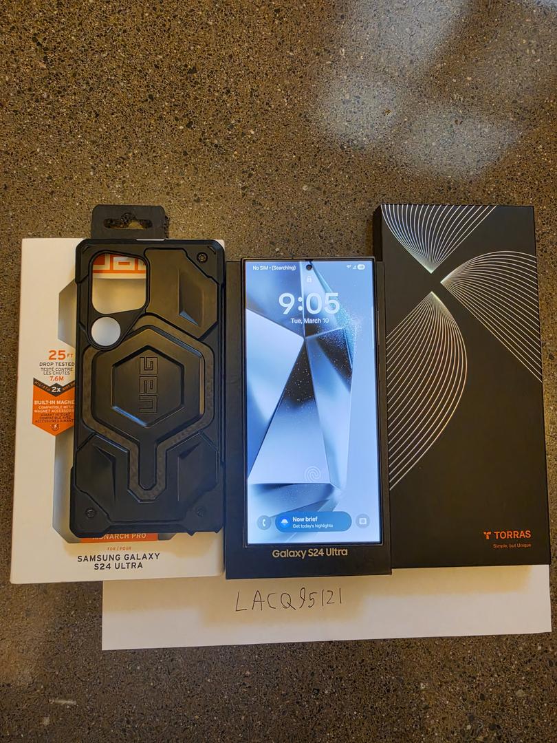 Comes with UAG Monarch Pro 25 ft drop protection, Torras Diamond Shield screen, one protector applied and one unused, only used with 80% battery protection, and all original packaging.