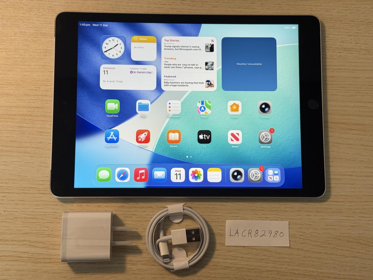 This iPad is in pristine condition. No noticeable wear and tear on the device. It is fully unlocked and ready to be used with any carrier. 96% battery health according to our testing. Touch ID and cameras function normally. Comes with a charger and cable. We will ship the device within 2 business days of purchase.