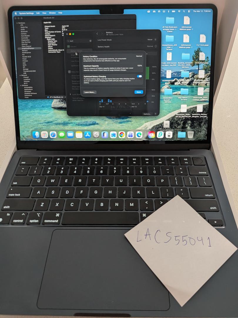 The laptop is in perfect condition, with no scratches on the body or screen—100% Battery Health. Box and original cable and charger included. Will ship using USPS Priority service in 1 to 2 business days.