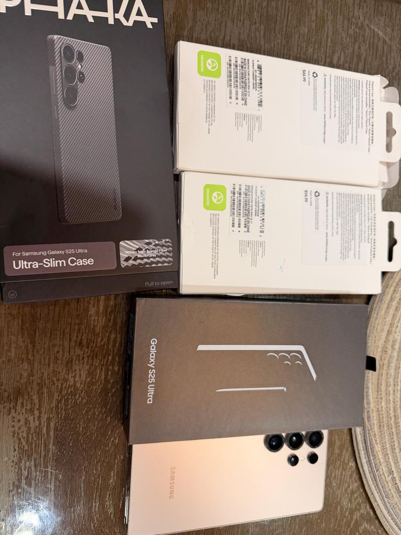 This is a mint-condition Samsung S25 Ultra unit, factory unlocked. It comes with the original box, cable, and 3 brand-new OEM Samsung cases (a Black and brown vegan-leather case and a hardshell case, all originally purchased with the unit but never used because I ended up using the Pitaka case).