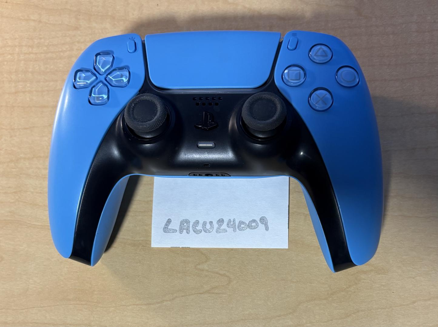 Used Blue DualSense controller in very good condition. Completely disassembled, inspected for damage and cleaned with NEW TMR 'Drift-Free' magnetic stick modules and stick caps installed. Re-assembled and re-calibrated to factory specs. Extensively playtested (minimum of 10 hours) to ensure proper functionality. Upgrade your gaming experience with an affordable controller that will outlast and out-perform the standard DualSense!!