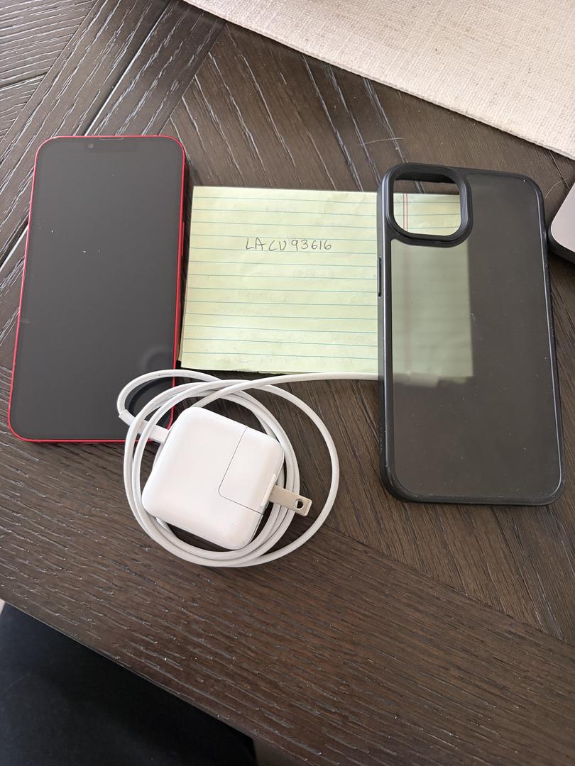 Red iphone 13 in good condition. Have an extra charger and case