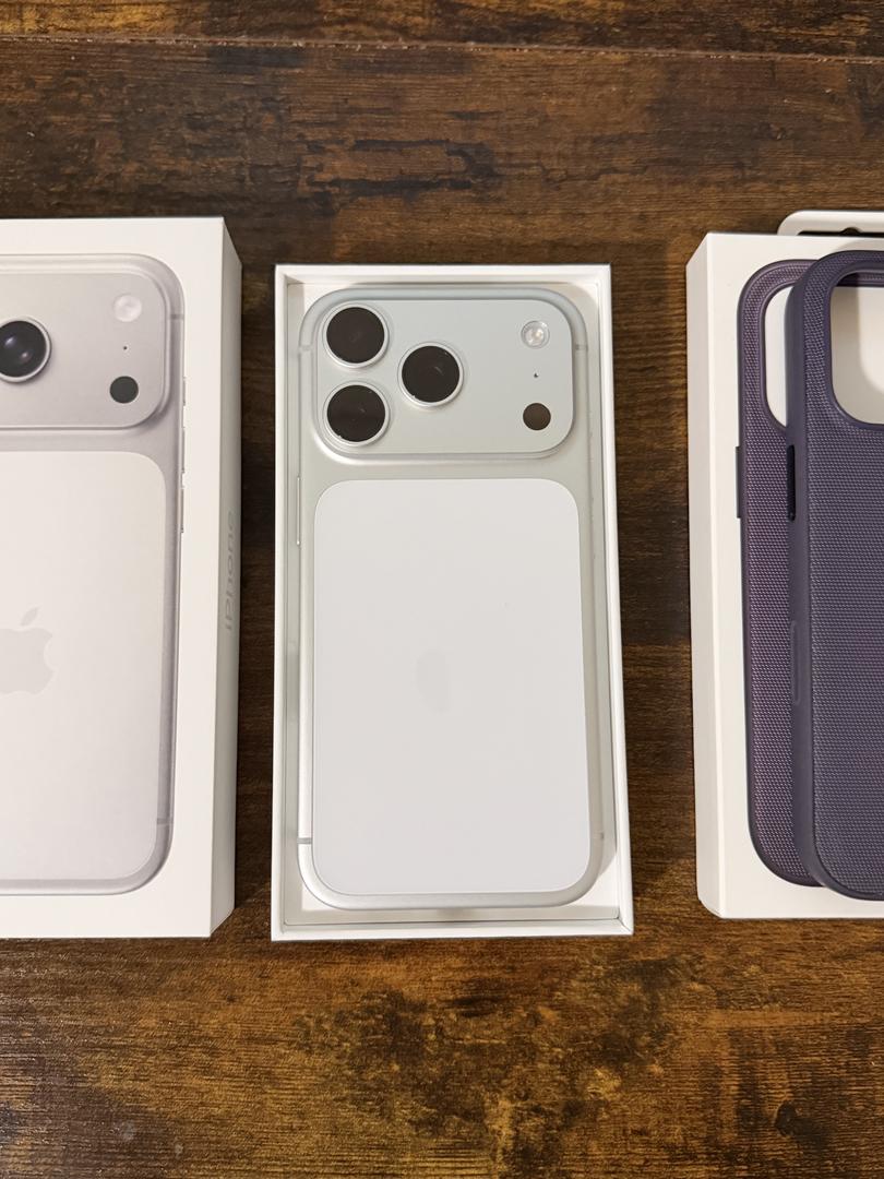 iPhone 17 Pro Mint with box and unused USB-C cable. Phone has had tempered glass screen protector since day one. Also comes with a free Techwoven case in Purple. Priced to go to a good home and was only used for a few charge cycles until I went back to iPhone Air.