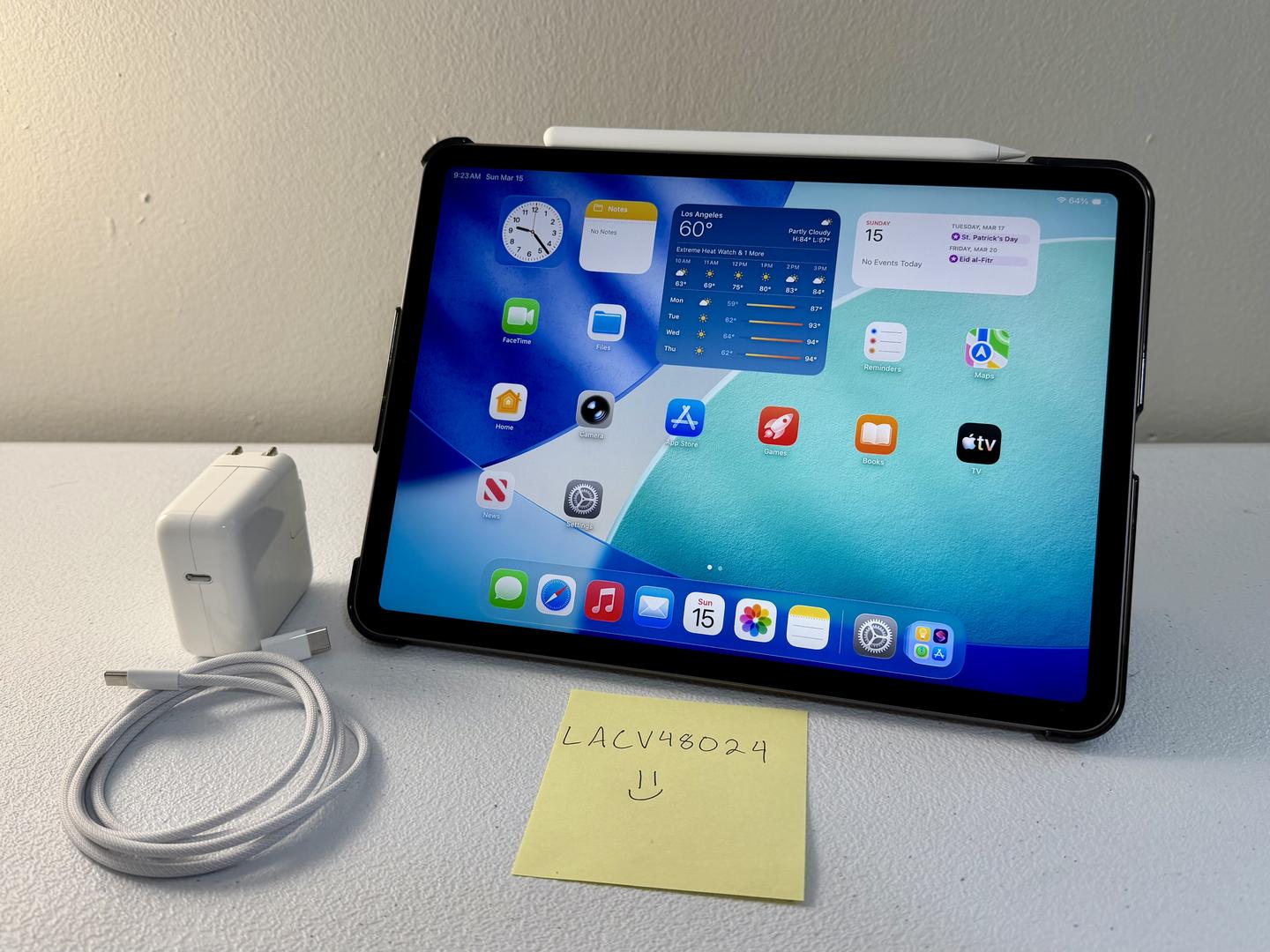 Comes with Apple Pencil 2nd gen, Black Case, and 30W USB-C charger and cable.