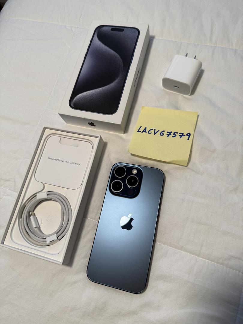 iPhone 15 Pro in Blue Titanium. Fully unlocked--works with any carrier.