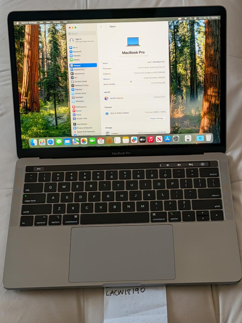 MacBook Pro - 13" Display with Touch Bar - Intel Core i5 8th gen - 8GB RAM - 256GB SSD - Space Gray