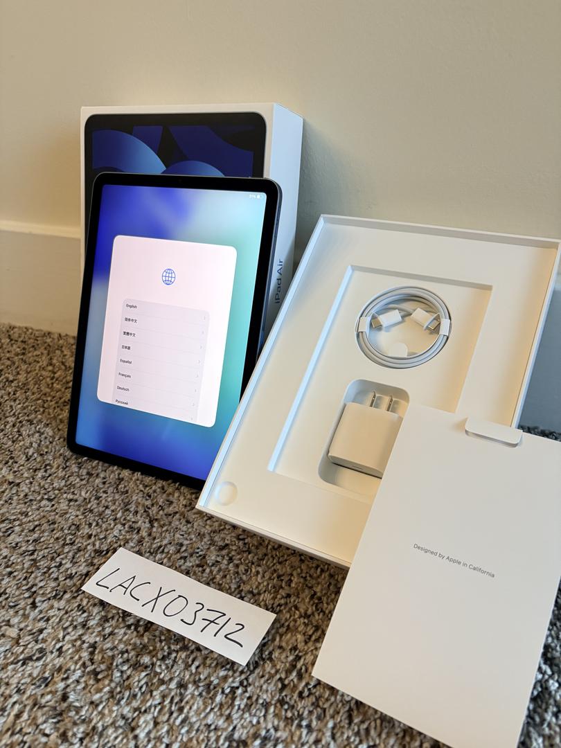 Gently used Apple iPad Air (5th generation) Wi-Fi, 64GB in Blue.