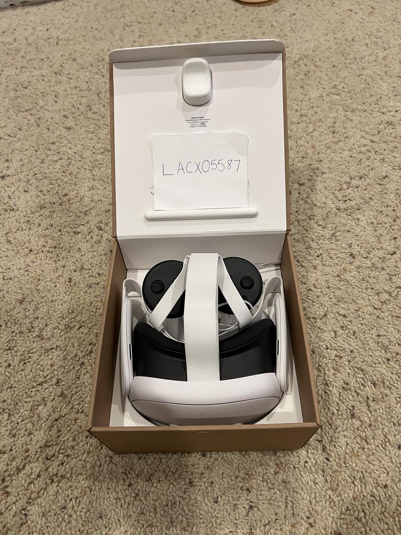 Meta Quest 3 with charger and controllers.