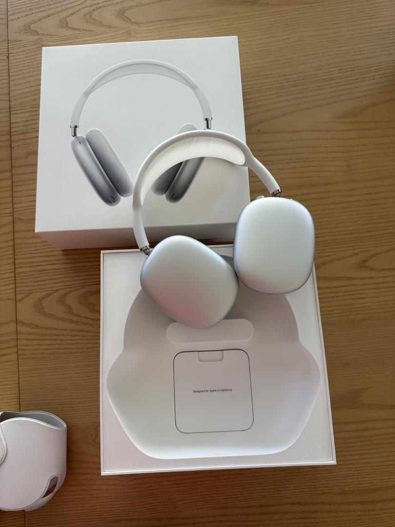 Like new, in box silver AirPods Max including charging cable. These were always kept encased in protective materials (ear pieces and head strap were wrapped in silicone covers to preserve them). You’re basically buying new AirPods.