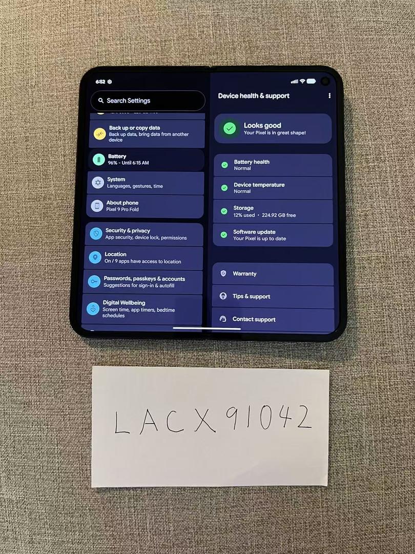 Selling a Google Pixel 9 Pro Fold 256GB, fully unlocked and in perfect working condition. The phone has been well cared for, with all functions including battery, cameras, and folding mechanism working flawlessly. There are some minor dings on the frame from normal use, please refer to the photos for detailed condition. Both the inner and outer displays are in great shape with no major scratches. This listing includes the phone only, no original box or charger.