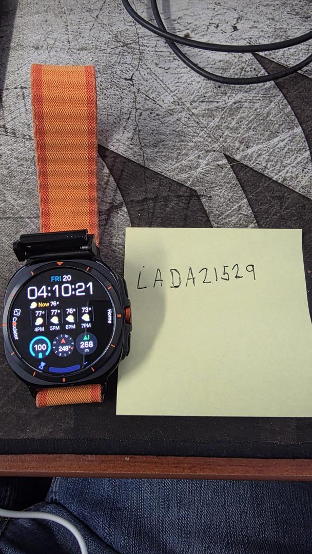 Galaxy Watch 2025 Edition. Barely worn. Orange rubber band that was only worn once and will come with trail loop band that was worn with it the rest of the time. Comes with charging cable.
