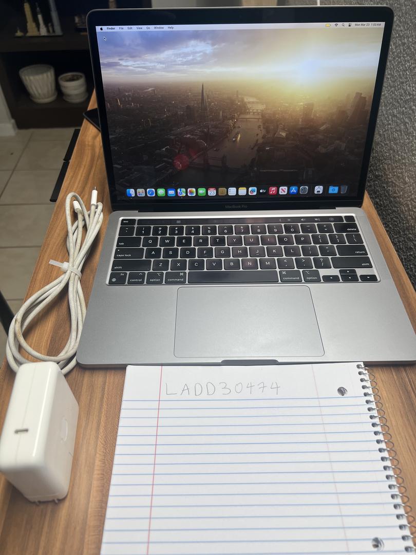 This Apple MacBook Pro 13.3" with the M2 chip is in excellent working condition. The laptop was previously owned but shows very minimal cosmetic wear. The charging cable shows some discoloration. The battery health is in great condition at 90% of its original capacity. The MacBook is fully reset and ready for a new owner.