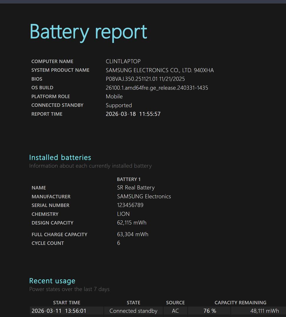 In Samsung Box only used a few time and 6 battery cycle counts. Works good, but I wanted a desktop for my video editing.
