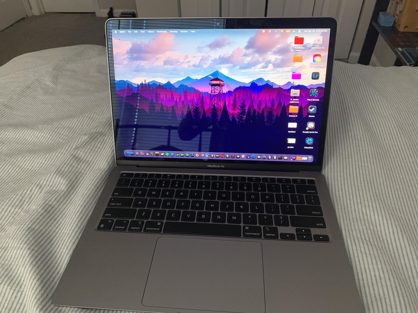 Good condition M1 MacBook Air with 8GB RAM, 256GB storage, 8-core CPU and 7-core GPU, very powerful for light and heavy tasks.