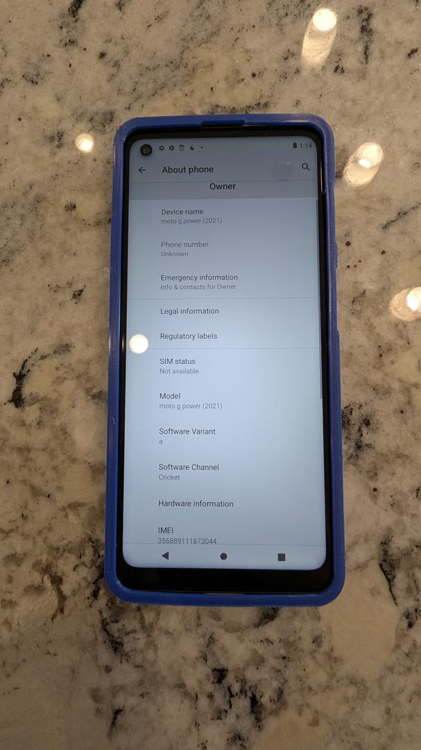 Moto G Power 2021 in good working condition. Everything functions perfectly — screen, cameras, charging port, speakers, fingerprint sensor, and all buttons. Comes with a protective case. Battery still holds a strong charge and easily lasts a full day. Please note this is the Cricket variant so it is carrier locked to Cricket/AT&T. Factory reset and ready to activate. Smoke-free home.