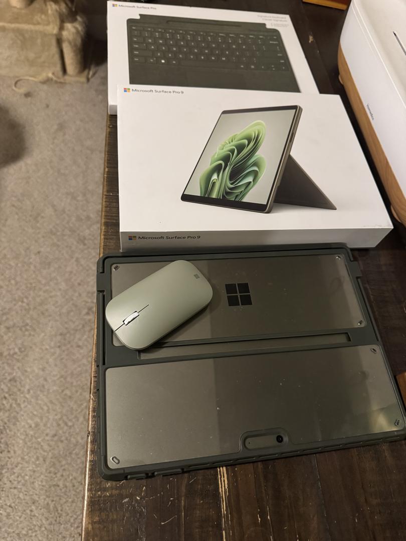 Microsoft Surface Pro 9 in Forest Green, Intel Core i7, 16GB RAM, 256GB SSD, in excellent condition. Very lightly used and fully functional.