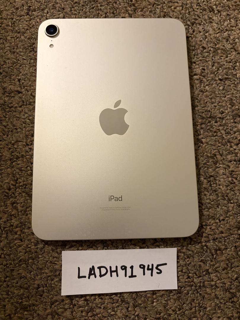 Offering an iPad Mini 6th Generation in Starlight. This device is 100% functional but shows signs of use, which is why it is listed in Fair condition (see pictures). This device has been used exclusively in a smoke-free and pet-free home. 100% functional. Battery life remains strong, and all buttons/Touch ID work perfectly.