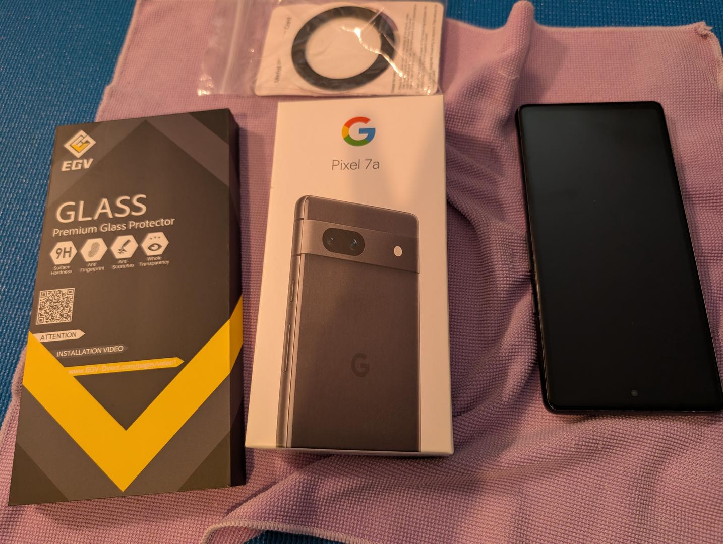 Google Pixel 7a, screen protector, and magnetic ring