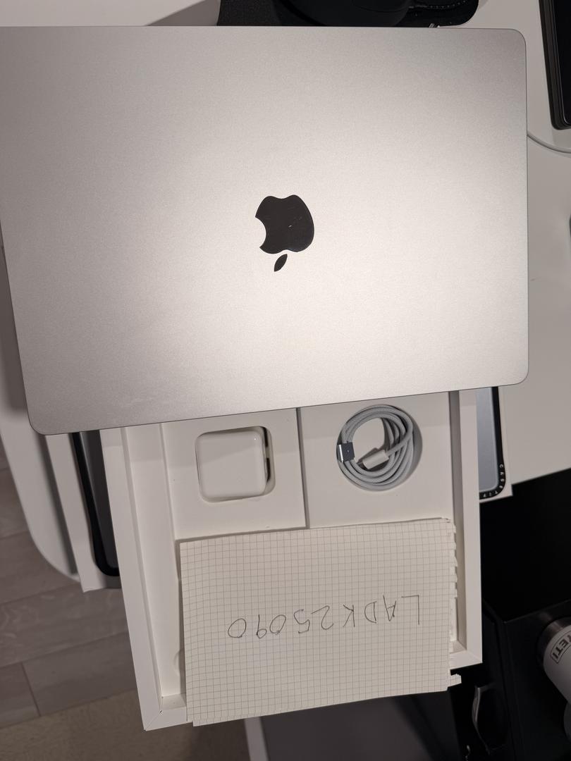 Gently used, no signs of wear and tear. Work upgraded me to a Macbook Pro M5.