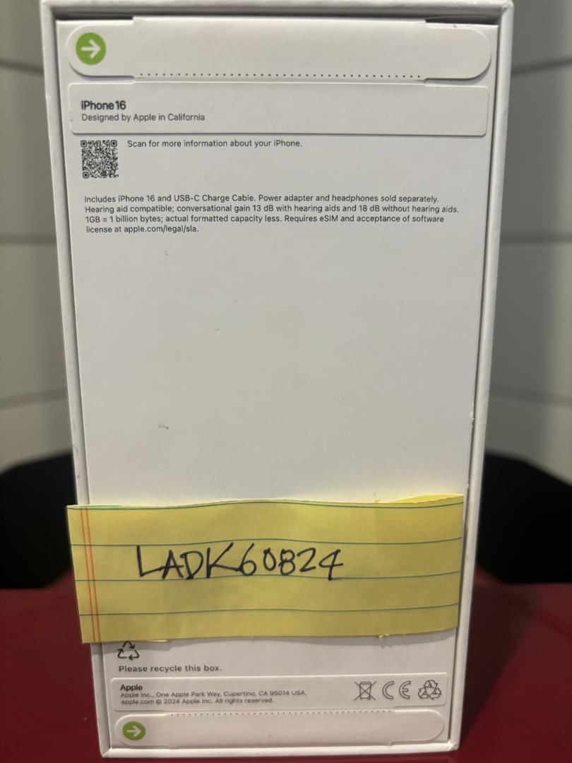 *includes unused / new iPhone 16 128GB in white with USB-C charge cable (according to back of unopened iPhone box)