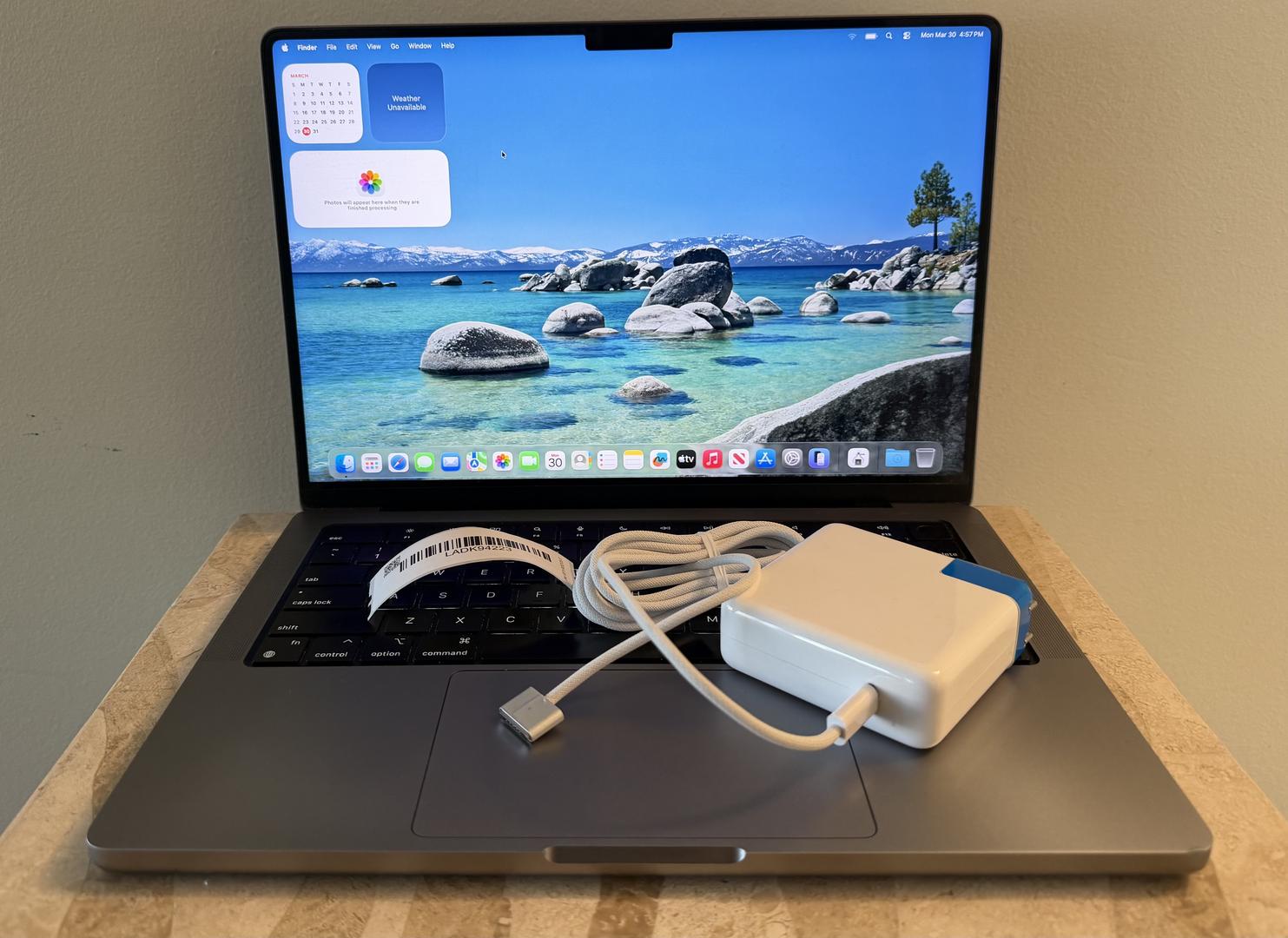 The laptop has been labeled in good used condition and works perfectly (see pictures). The laptop casing is in good shape with minor blemishes, wear, & tear (see pictures). The battery has a good, healthy charge and only has 582 cycle counts (see pictures). Apple macOS is installed & the system passcode is currently set to 2026.