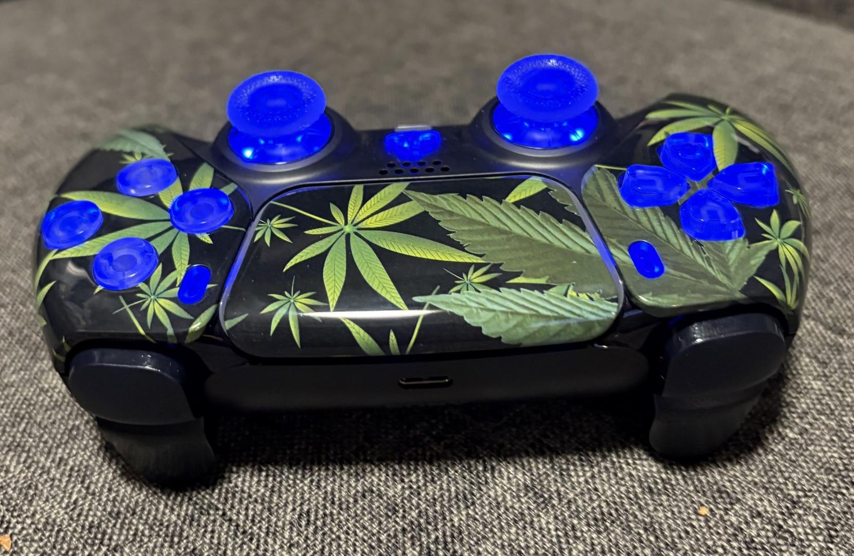 Custom 'Sweet Leaf' Lighted Dualsense w/ "TMR sticks & Battery Upgrade"