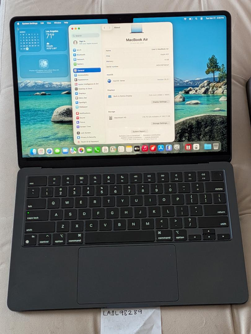 Apple MacBook Air 13 2024 M3 8-Core CPU 8-Core GPU 8GB RAM 256GB Storage Midnight 100% Battery Cap