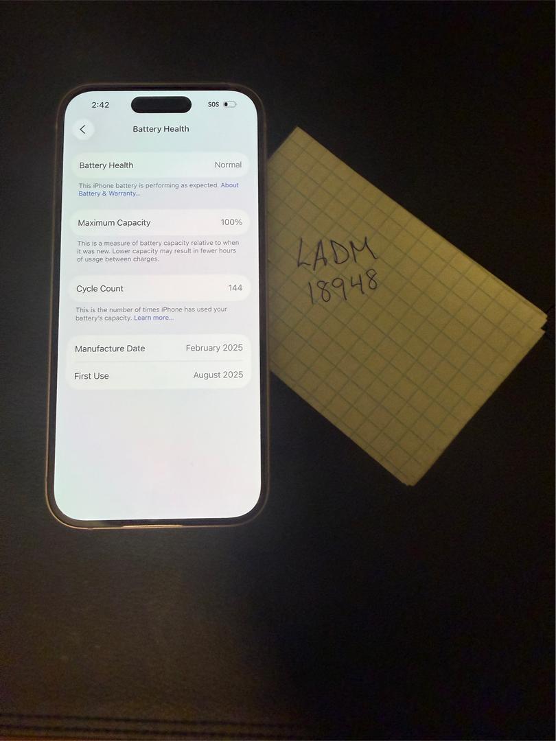 100% battery health, 144 cycles.