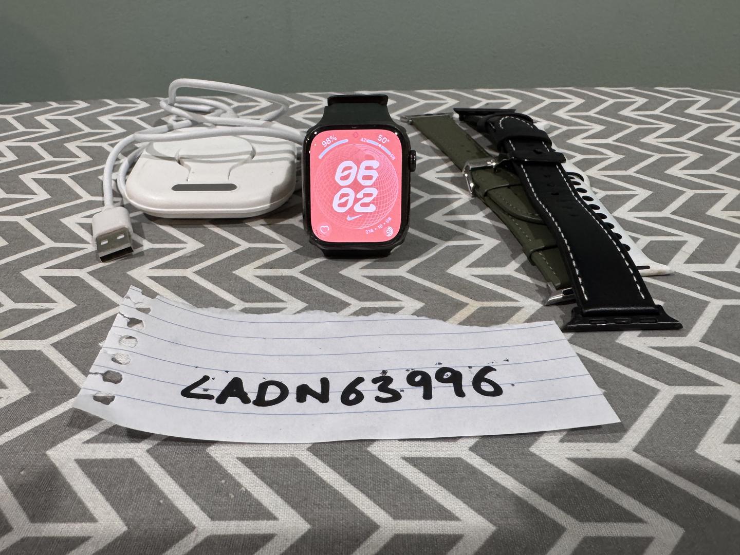 Apple Watch Series 8 45 mm Graphite Stainless Steel model. Comes with a few bands as seen in pics.