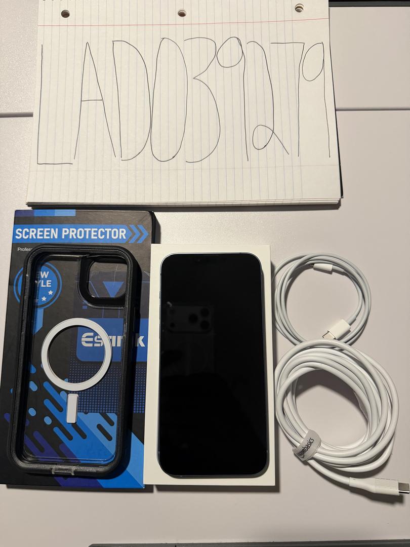 iPhone comes with original box, two chargers, privacy glass screen protectors, and an otter box case.