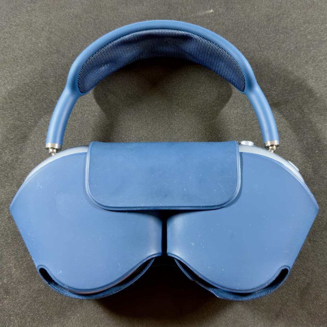 This is a pair of first-generation Apple AirPods Max in the Sky Blue finish featuring the Lightning charging port. The aluminum ear cups are in pristine condition with no scratches or dents. While the knit mesh headband shows some natural stretching from regular use, it is fully intact with no rips or tears. The headphones are 100% functional, including Active Noise Cancellation and Spatial Audio. This listing includes the original Apple Smart Case, which is required for low-power mode, and a Lightning to USB-A charging cable. The device has been factory reset and removed from Find My for the next owner.