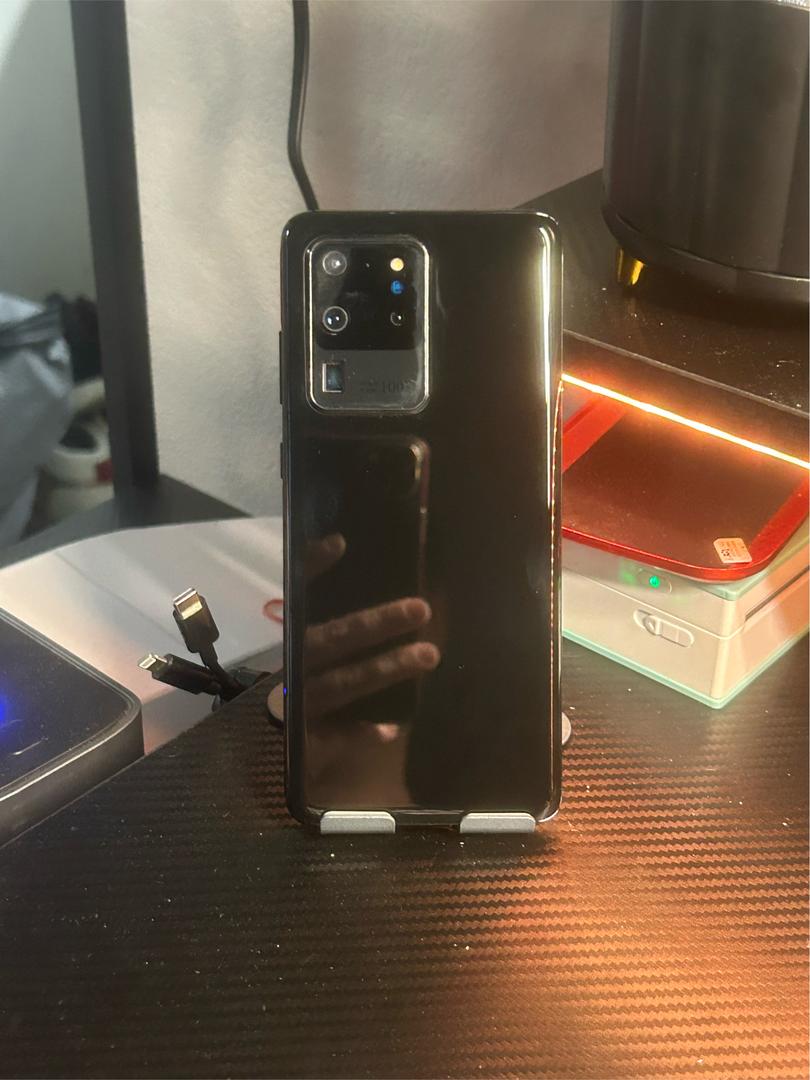 Galaxy S20 Ultra 5G, 128GB. This device has been fully rebuilt with a brand new screen, frame, back glass, and camera lens cover, giving it a like-new feel.