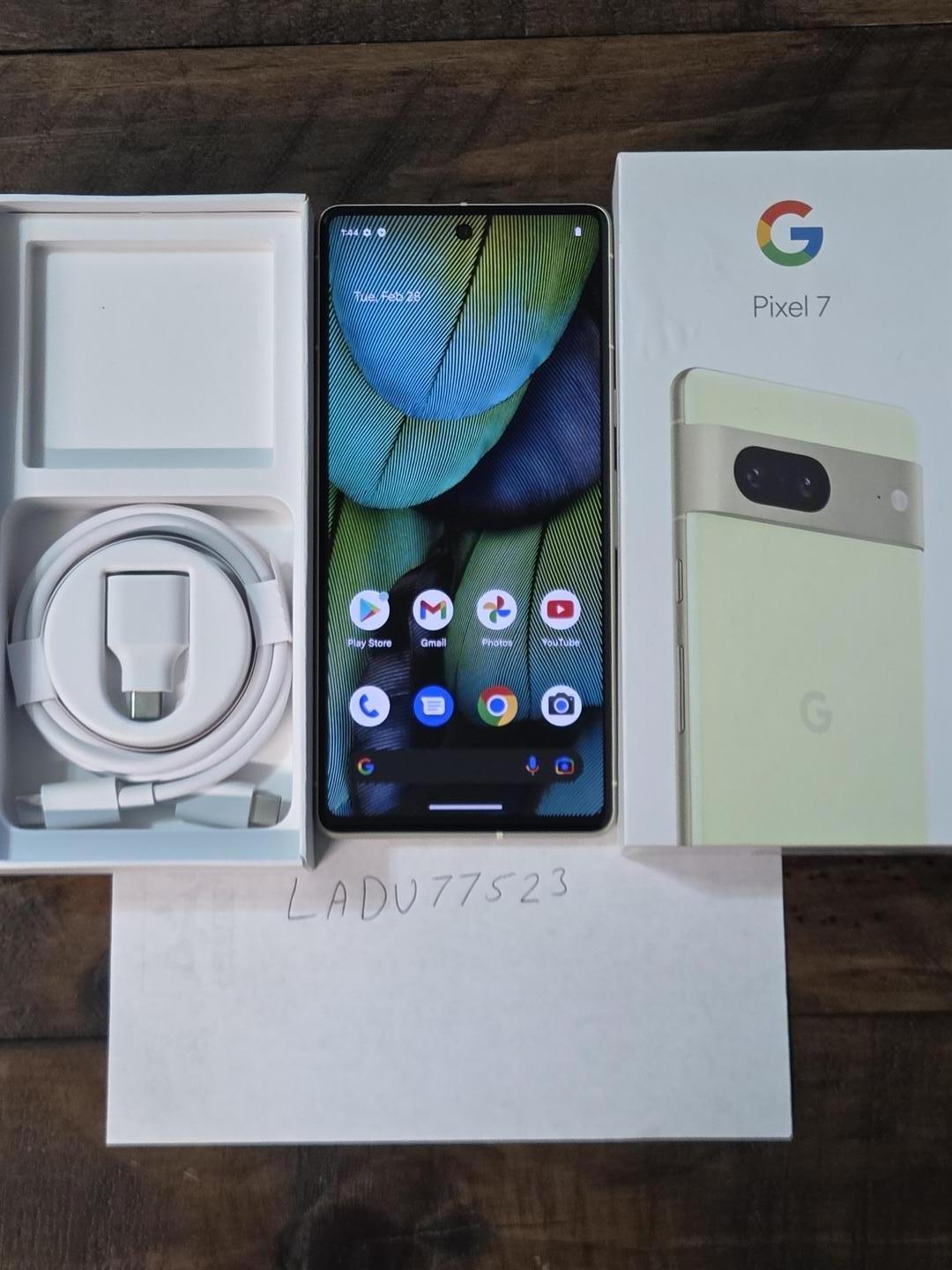 Verizon Google Pixel 7 128gb Lemongrass in color, never been activated. Ready to go. Comes with phone, cord, and box just like factory. Any other questions feel free to ask.