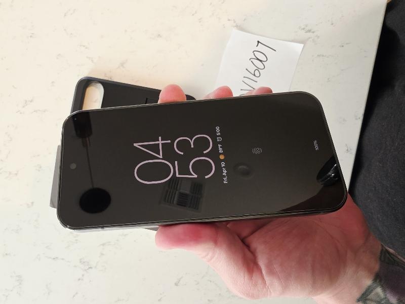 Great condition overall. Two tiny scratches on the top of the frame, but the screen and back are perfect. Includes a case with a screen protector installed, as well as the box.