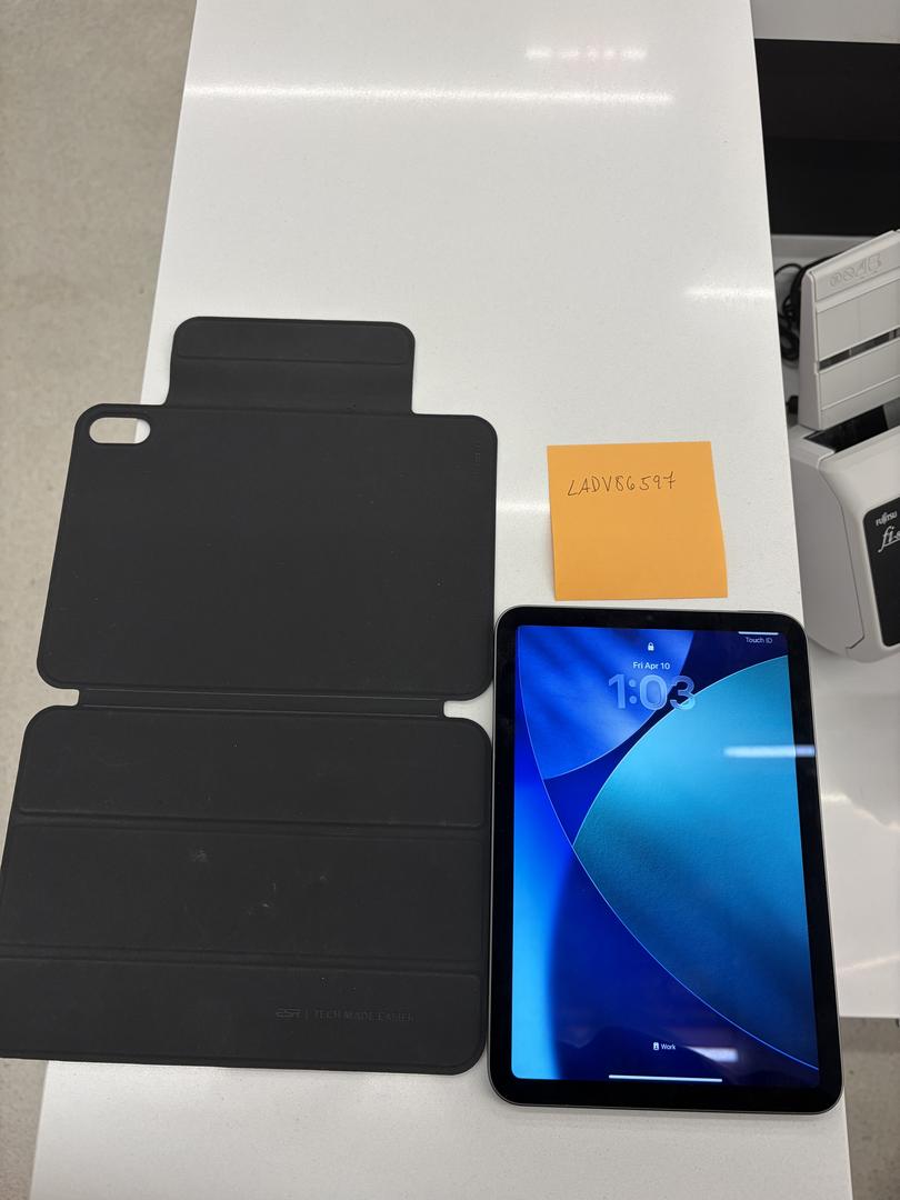 An iPad mini 6 in Space Grey, 64 GB, WiFi, no scratches on body or screen, apart from a very tiny chip. Comes with a magnetic case.