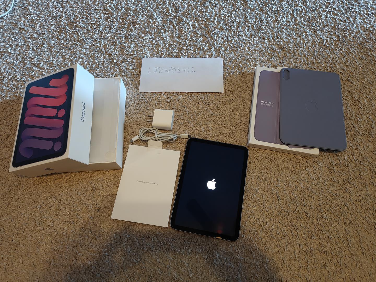 Great condition iPad Mini 6th Gen in purple. Comes in original box and accessories, includes office Apple Smart Folio case ($60 value).